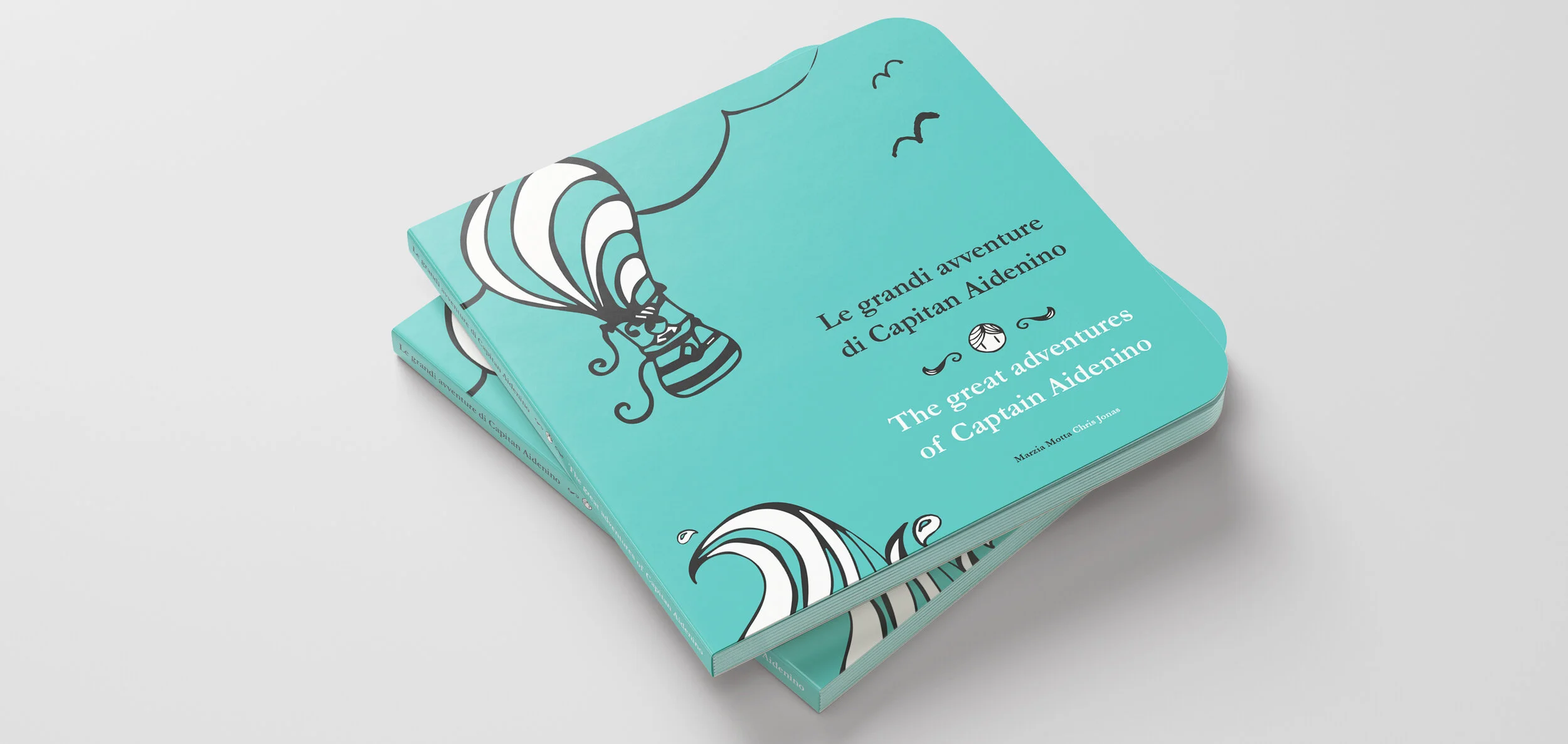 This book follows the great adventures of Captain Aidenino around the world and back home. Written both in Italian and English, it is illustrated with just black, white and acqua. Find it on Amazon.