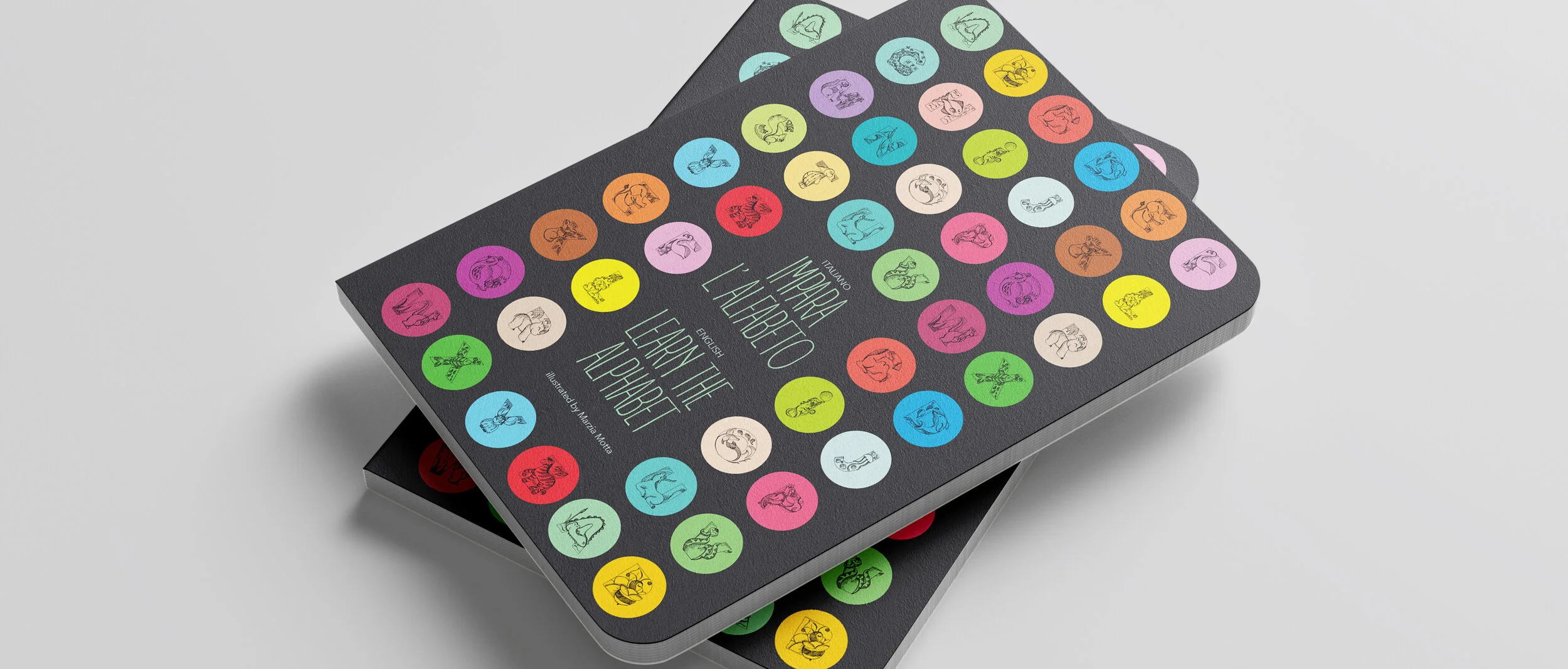 The simple layout of these hand-illustrated animals helps bilingual children (and their parents) learn the alphabet and the names of animals whose initials match in Italian and English (I had to cheat on the J because there is no animal that starts with a J in Italian!). The project includes a set of cards, a book, and a personalized poster. Find it on amazon.